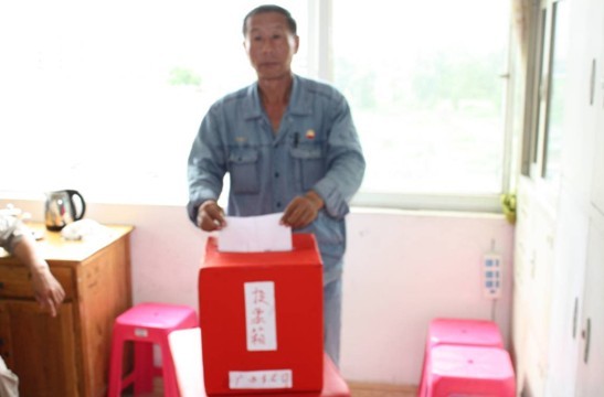 廣西視頻會場的黨員在投票選舉